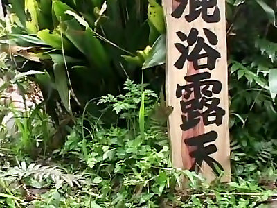 Insatiable Asian honey outdoors in the public bath