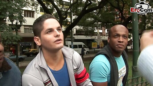 schwarzer kerl macht ein schüchternes dunkelhaariges stöhnen, während ihr liebhaber beobachtet