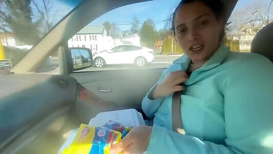 chica gordita está complaciendo a un vecino de la bbc con una mamada caliente y un coño apretado en el auto