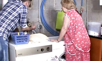 German aged Granny Erika 73 seduce to Tear Up in kitchen by Young Guy