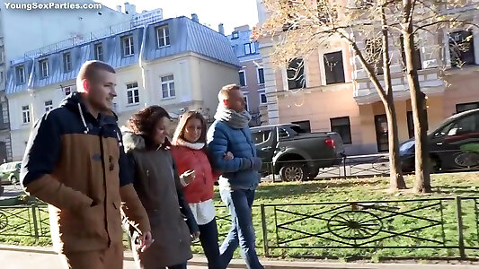 18 ans plus âgés - des femmes russes en fusion tentent une orgie échangiste hardcore