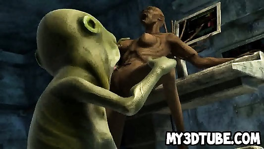 trójwymiarowy palący kosmita dickgirl bawi się szczękową damą w stacji kosmicznej