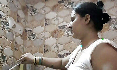 Indian house wifey bathing outside