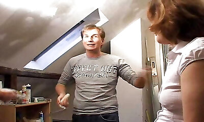 A chubby German woman getting fucked hard while her fellow is at work