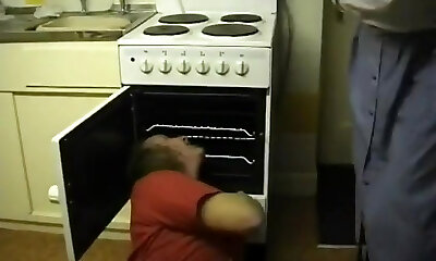 Chubby guy tries to be a macho and fucks his milf housewife